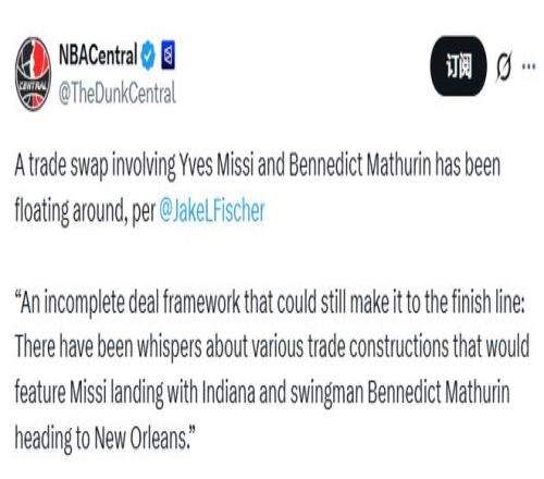 步行者鹈鹕谈判交易!核心框架马瑟林换米西另有两队也想抢中锋